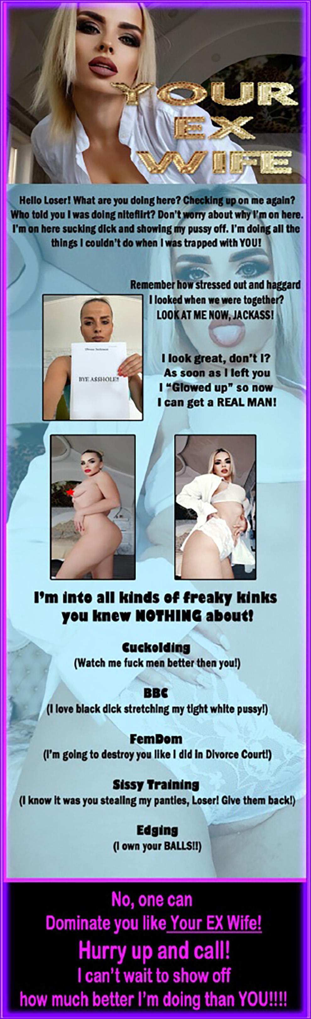 Your naughty ex wife is ready to have all kinds of Kinky fun with you!